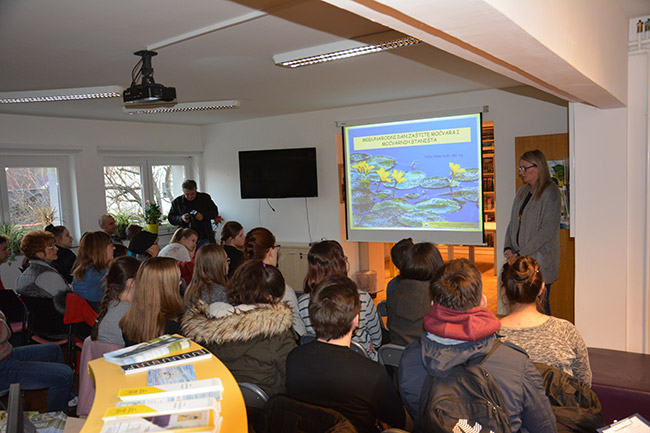 | U sklopu obilježavanja Svjetskog dana vlažnih staništa ( World Wetlands Day ) u Gradskoj knjižnici Slavka Kolara Čazma, Javna ustanova za upravljanje zaštićenim dijelovima prirode Bjelovarsko-bilogorske županije održala je predavanje o važnosti močvara i njihovoj ulozi u klimatskim promjenama s naglaskom na vlažna staništa u Bjelovarsko-bilogorskoj županiji. Gost predavač, gospodin Darko Podravec je upotpunio predavanje svojim izlaganjem o desetogodišnjem monitoringu ornitofaune na području ribnjaka uz Česmu na kojima je utvrdio 140 vrsta ptica.